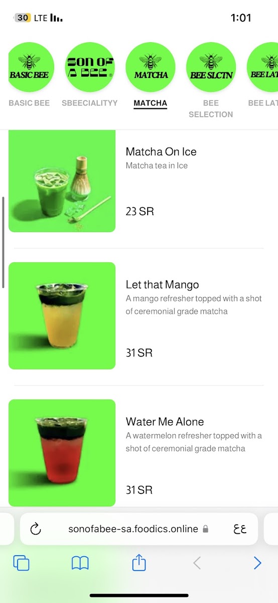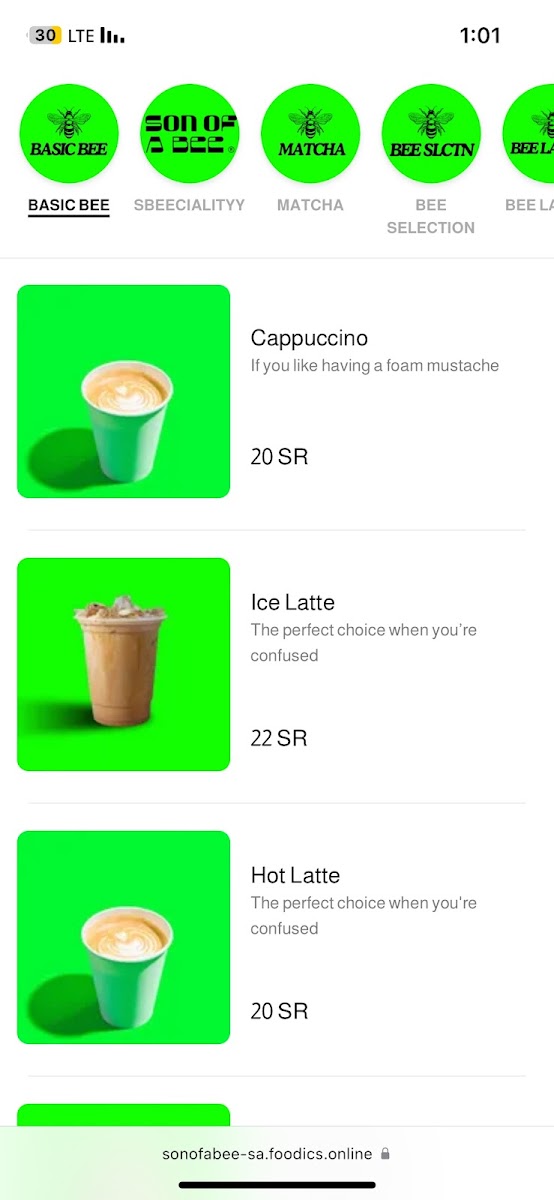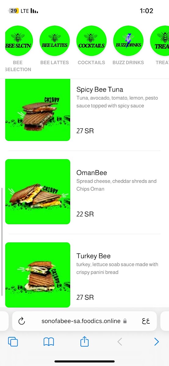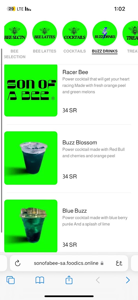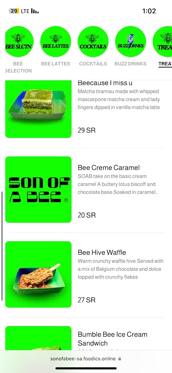Son of A Bee Menu